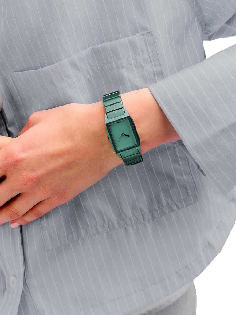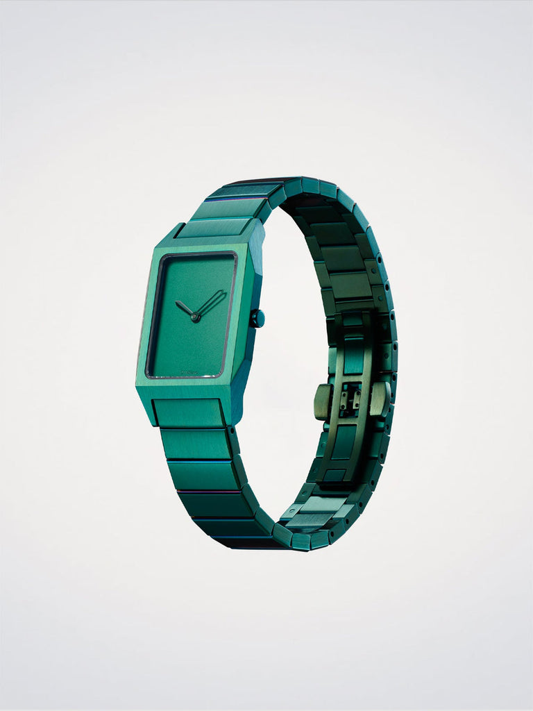 The minimalist dial is accompanied by a clean and elegant bracelet, which follows the case organically and directly, and not only enhances the overall aesthetics of the watch.