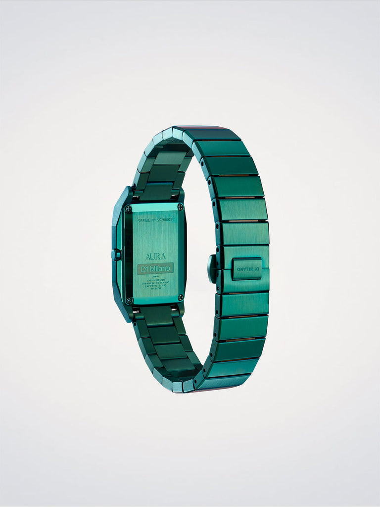 The new Aura SS25. New shape, new DNA, new world. We wanted to create a refined and unexpected accessory for women, combining the timeless elegance of a vintage rectangular design with a contemporary touch thanks to the different, vibrant and modern steel finishes. The case is rectangular, made of brushed