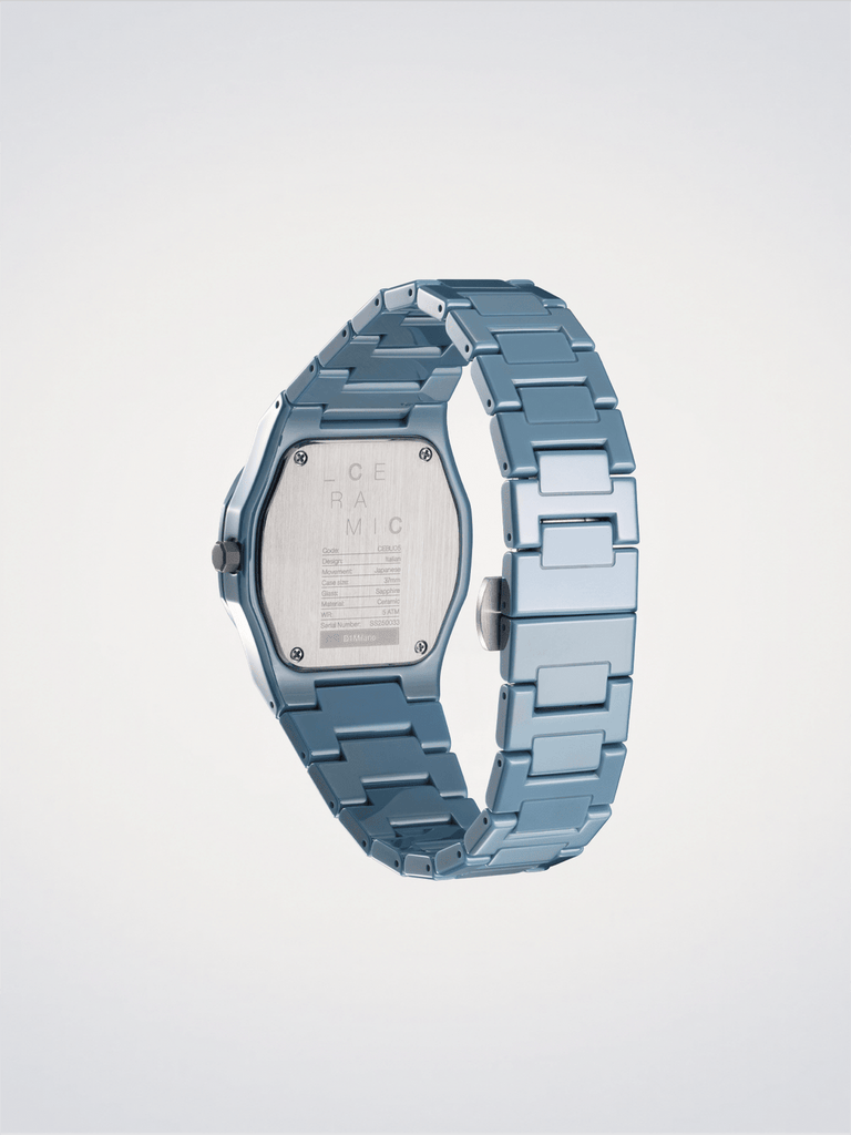An experiment between monochromatic minimalism, sophistication and study of materials create an innovative and timeless design accessory. Ceramic is not only resistant to scratches and wear, but it also offers a sleek, polished finish that maintains its pristine condition over time.