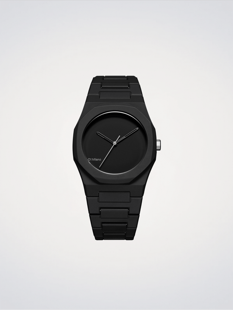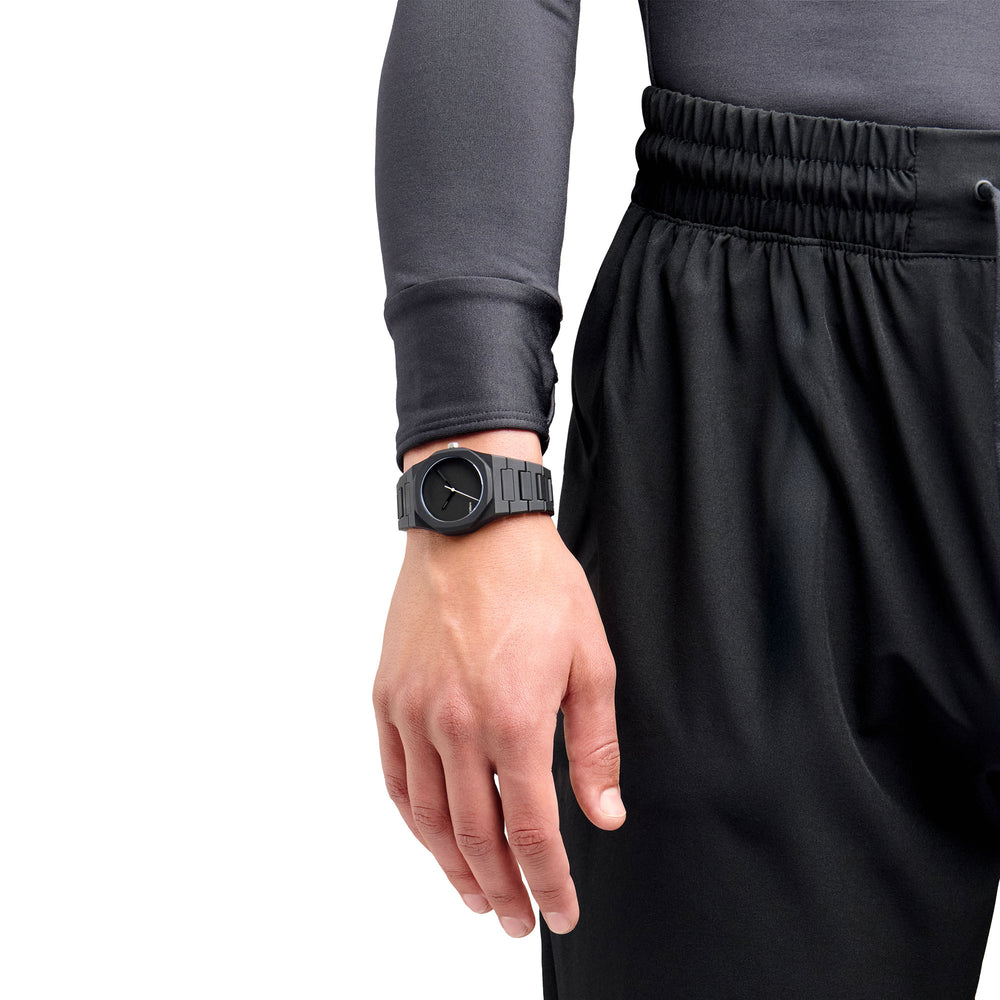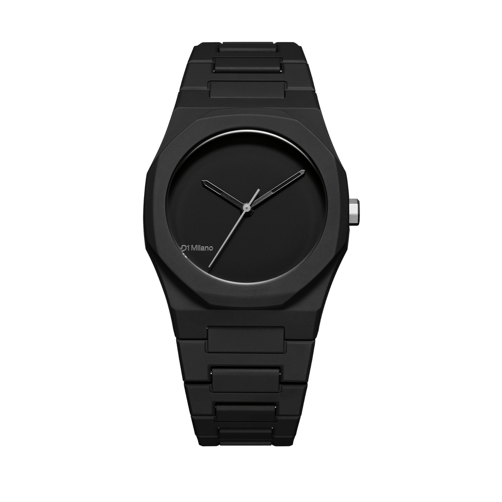 This new, ultra modern and contemporary Poly 37mm enamel is made with a durable black polycarbonate case, with soft touch finishing, that offers a modern and essential look, which perfectly blends everyday style and practicality. The lightweight polycarbonate guarantees a perfect fit comfort to the wrist, both male and female, making it perfect for daily use, while maintaining a robust aesthetic.