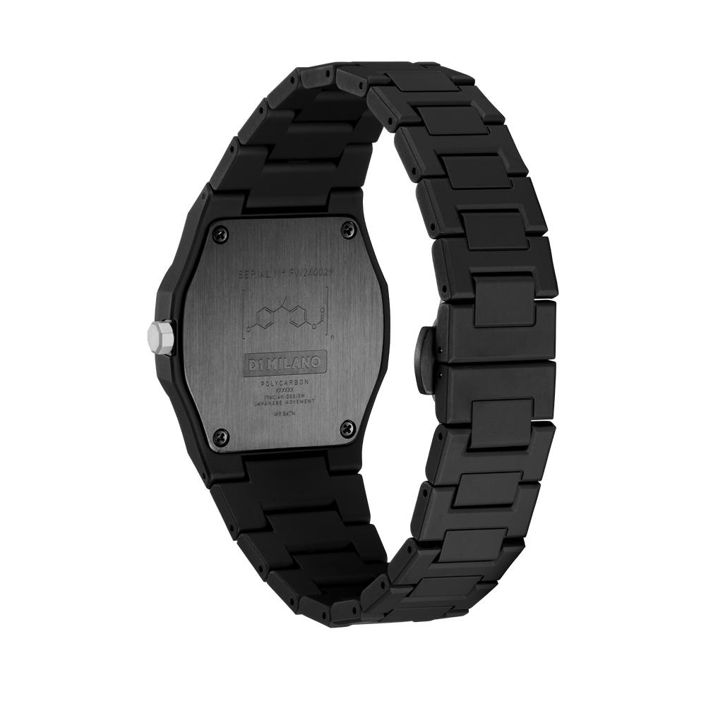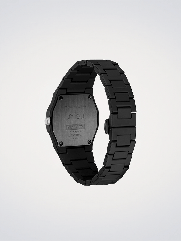 An object is defined as icon when it represents a precise phase in history, both technically, formally and culturally. polycarbon is our icon. A new interpretation of one of our iconic products: the Polycarbonate 37mm.The DNA remains, the Japanese movement as well. Essential monochromatic.
