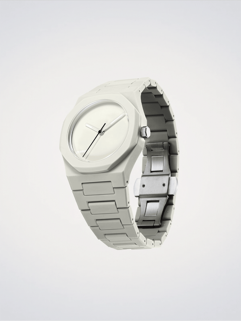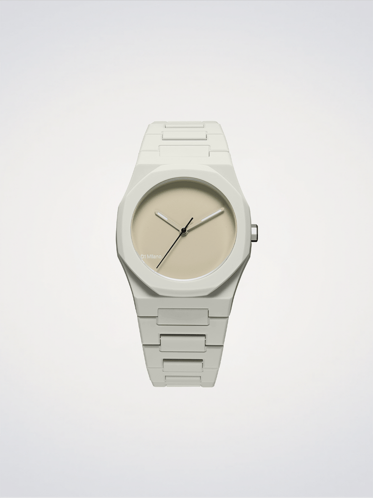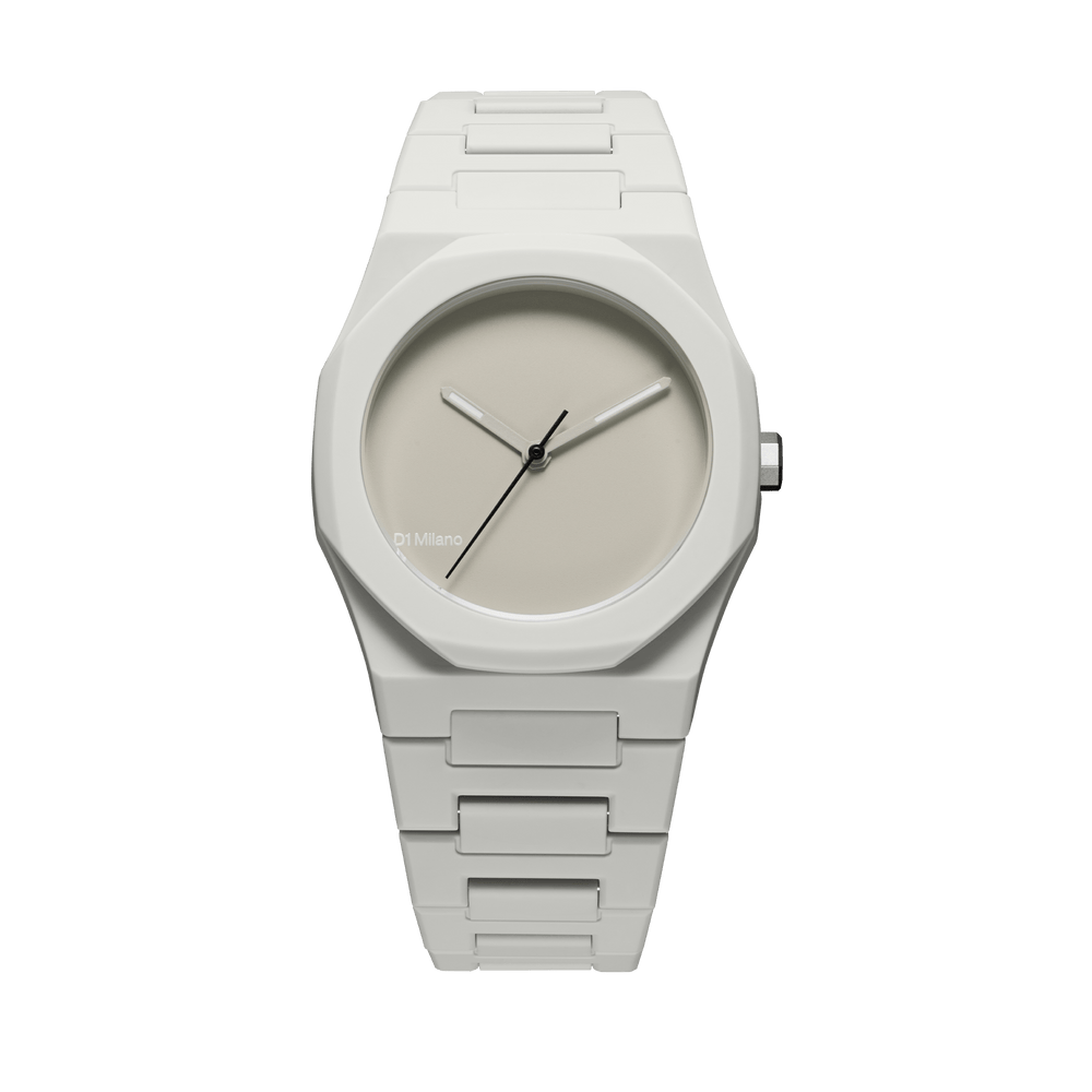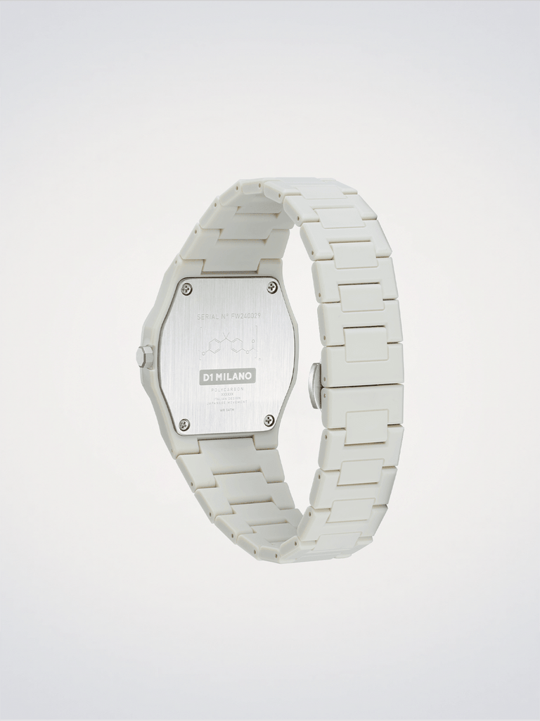 This new, ultra modern and contemporary Poly 37mm enamel is made with a durable taupe polycarbonate case, with soft touch finishing, that offers a modern and essential look, which perfectly blends everyday style and practicality. The lightweight polycarbonate guarantees a perfect fit comfort to the wrist, both male and female, making it perfect for daily use, while maintaining a robust aesthetic.