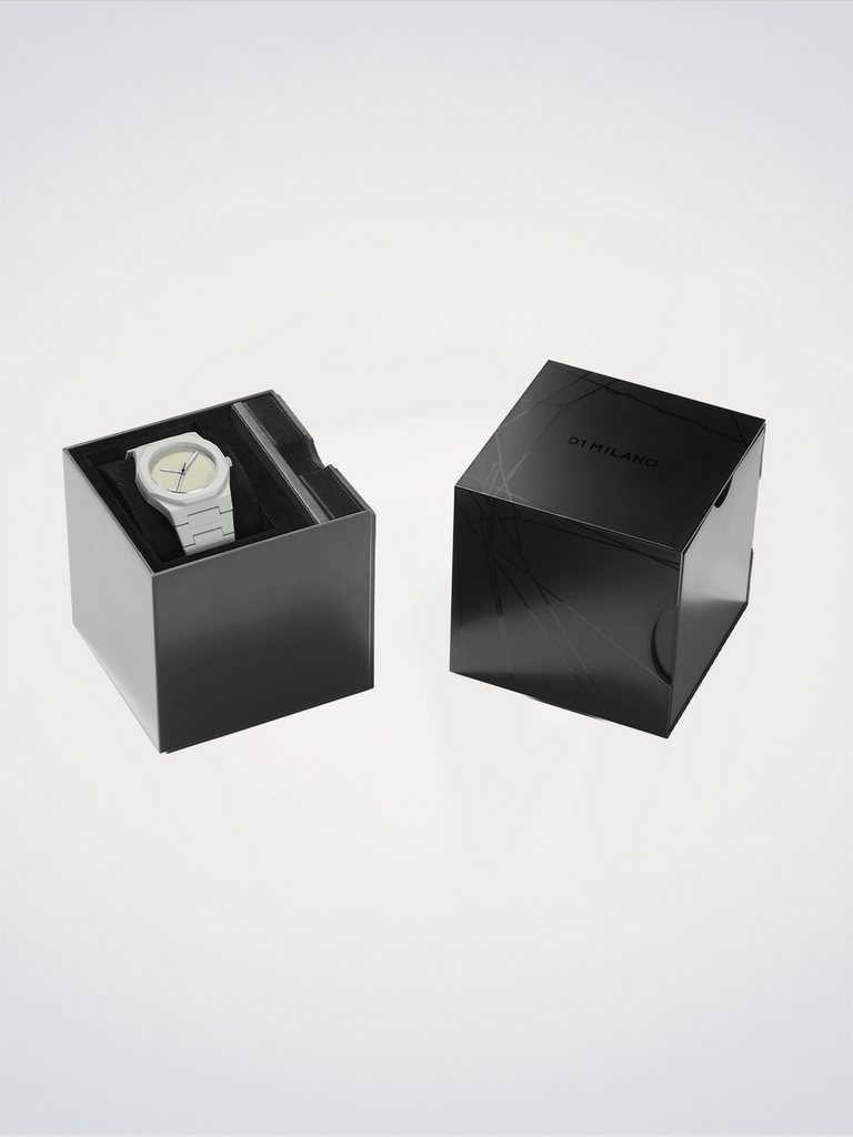 The new Poly Dot is inspired by the abstract expressionist movement, and thanks to the famous "drip technique" used by the movement artists, it allowed us to pour colored liquid paint on the polycarbonate surface of the watch, allowing us to create something unique and artistic. The design object is our canvas, both black and white, and the final result is a product that will accompany you without being banal.