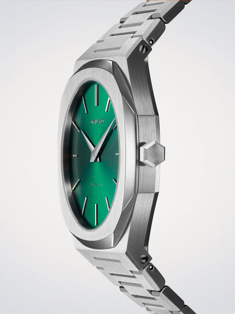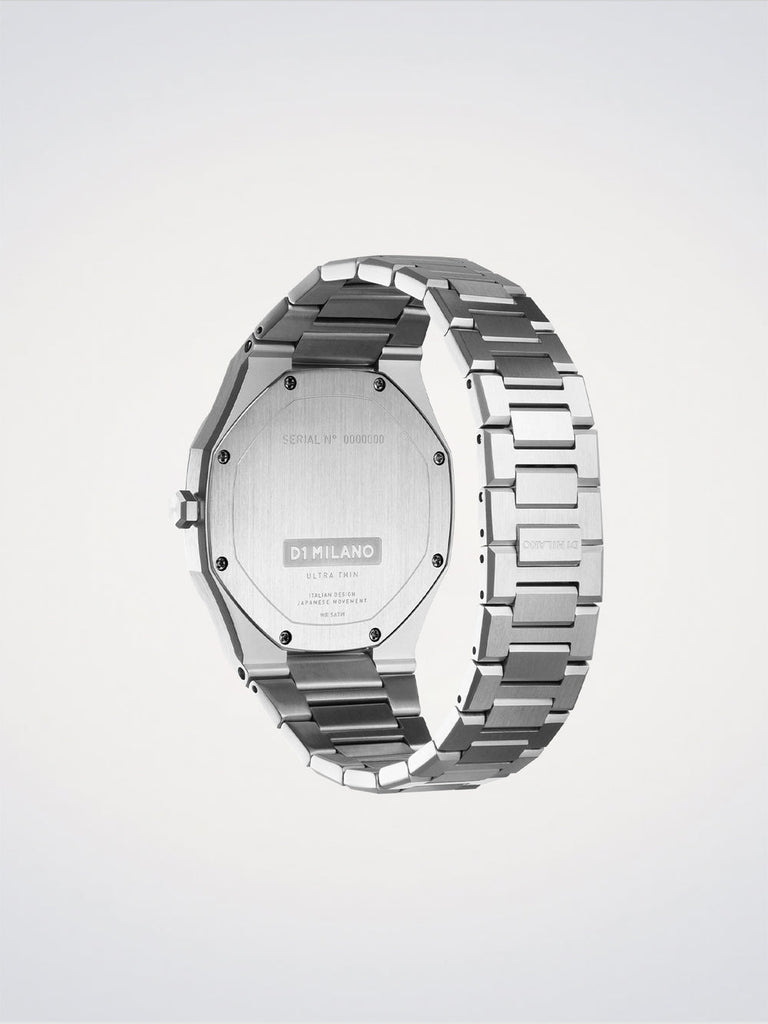 Crafted with a 40mm case and 316L silver stainless steel bracelet, the Ultra Thin is defined by its clean lines and refined simplicity. Its ultra-slim profile fits seamlessly on the wrist, offering everyday elegance with unmistakable character.