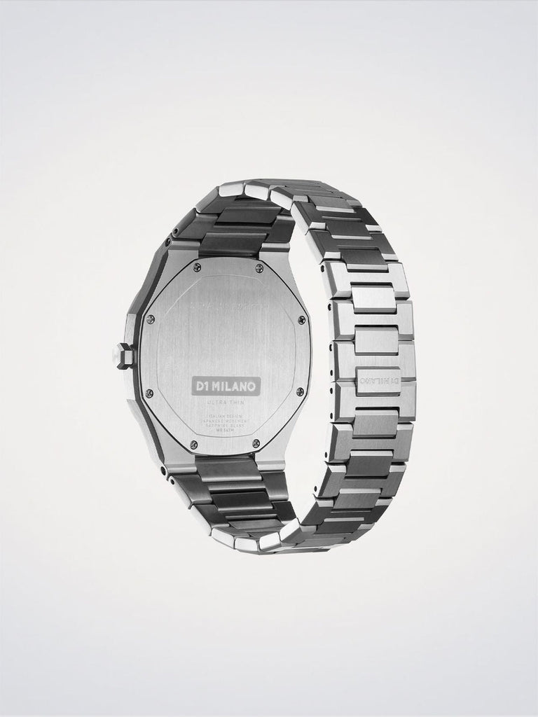 Crafted with a 40mm case and 316L silver stainless steel bracelet, the Ultra Thin is defined by its clean lines and refined simplicity. Its ultra-slim profile fits seamlessly on the wrist, offering everyday elegance with unmistakable character.