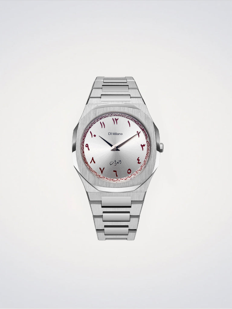 At the heart of this piece lies the sunray red dial, blazing with the depth and warmth of a Middle Eastern sunset. Accented by Arabic numeral indexes, the dial is more than a design choice — it’s a cultural signature, a connection to heritage expressed through modern craftsmanship.