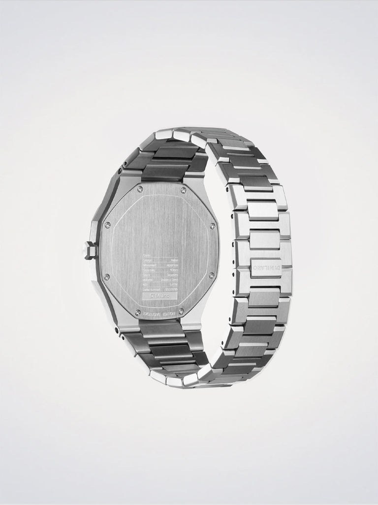 Crafted with a 40mm case and 316L silver stainless steel bracelet, the Ultra Thin is defined by its clean lines and refined simplicity. Its ultra-slim profile fits seamlessly on the wrist, offering everyday elegance with unmistakable character.