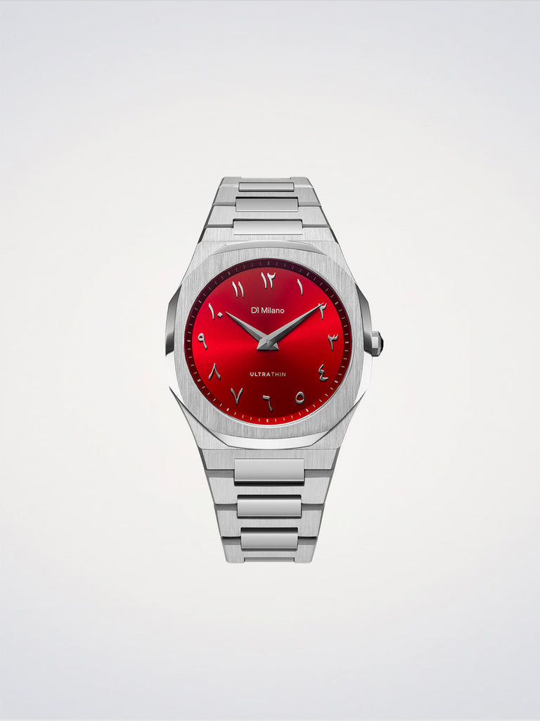 At the heart of this piece lies the sunray red dial, blazing with the depth and warmth of a Middle Eastern sunset. Accented by Arabic numeral indexes, the dial is more than a design choice — it’s a cultural signature, a connection to heritage expressed through modern craftsmanship.