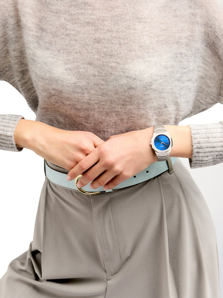 Designed after our famous Geo edition, but with a smaller case fit for the ladies. Keeping the same stainless steel elements and the bright blue dial with a sunray finish.