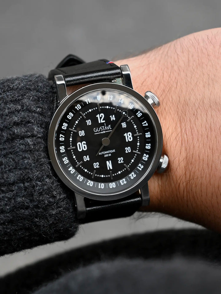 Un boîtier Compressor, une étanchéité à 200M, découvrez la collection Jules, une montre aux allures nautique en hommage à Jules Vernes.