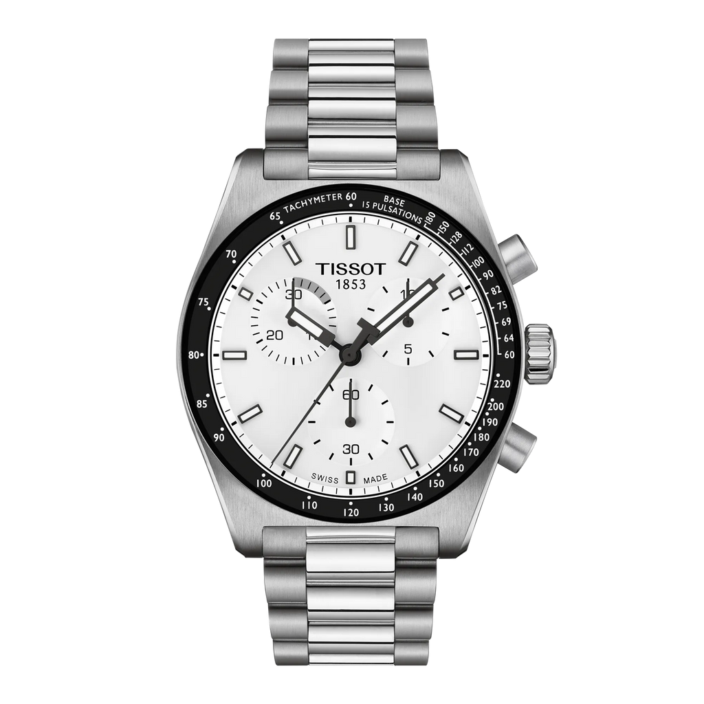 Introduite pour la première fois dans les années 1960, la montre Tissot PR516 a été inspirée par le monde de la course automobile à grande vitesse. En élargissant la gamme PR516, Tissot continue d'alimenter l'esprit de ceux qui recherchent un garde-temps aussi implacable que leurs objectifs, les poussant à relever les défis, tout comme les héros qui le portent. Le chronographe Valjoux, le tachymètre et le pulsomètre fonctionnent à l'unisson et sont conçus pour capturer chaque battement dans les moments les plus exaltants de la vie. Avec la vitesse et la fréquence cardiaque suivies sur la lunette, et l'heure clairement affichée sur le cadran blanc aux accents bleus, ce design offre une expérience transparente et intuitive, évoquant le ciel sans limites et le potentiel illimité qui nous attend. Les compteurs, placés dans la partie inférieure du cadran, renforcent l'aspect dynamique de la montre.